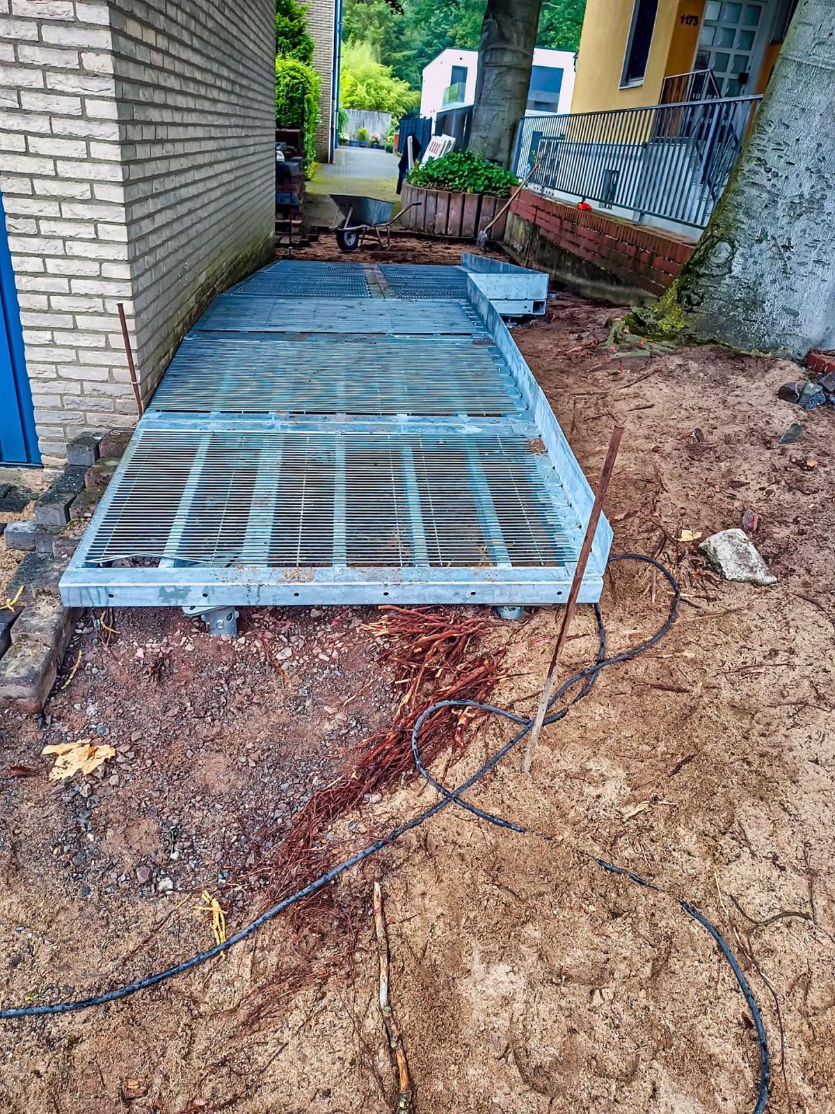 Bauwerke im Garten- und Landschaftsbau sind unter anderem auch Wurzelbrücken, die vorhandene Bäume vor Verdichtung des Bodens oder zur Vermeidung von Schäden durch Fuß- und Fahrradwege oder Grundstückseinfahrten schützen. Sie ermöglichen über dem empfindlichen Wurzelwerk, das Auffangen von Lasten und sorgen für Belüftung des Bodens. Gleichzeitig ergibt sich eine sichere und ebene Fläche.