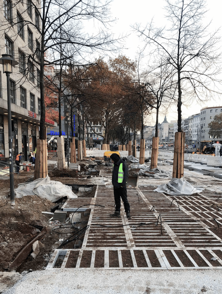Stadtbäume sind von ihrem natürlichen Lebensumfeld getrennt und sind dem Stress einer Großstadt ausgesetzt. Bekommen sie nicht ausreichend Lebensraum, werden sie krank und sterben mittelfristig ab. Gerade in Städten und gepflasterten Flächen benötigen die Bäume einen sicheren Schutz vor Druck und Unterstützung bei der Sauerstoffversorgung des Wurzelraums. Ist dies nicht gegeben, verschaffen sich die Wurzeln Luft und sterben mittelfristig ab. Die Radix P Wurzelbrücke ist das richtige System für diese anspruchsvollen Stadträume.