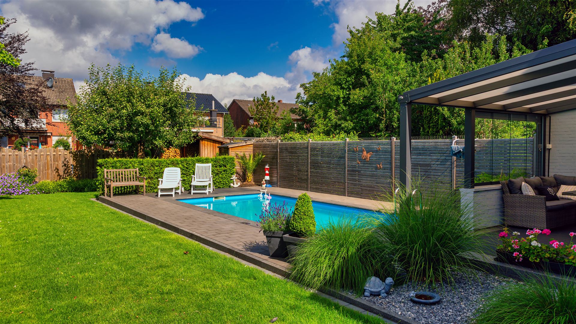 Swimmingpool mit Gartengestaltung