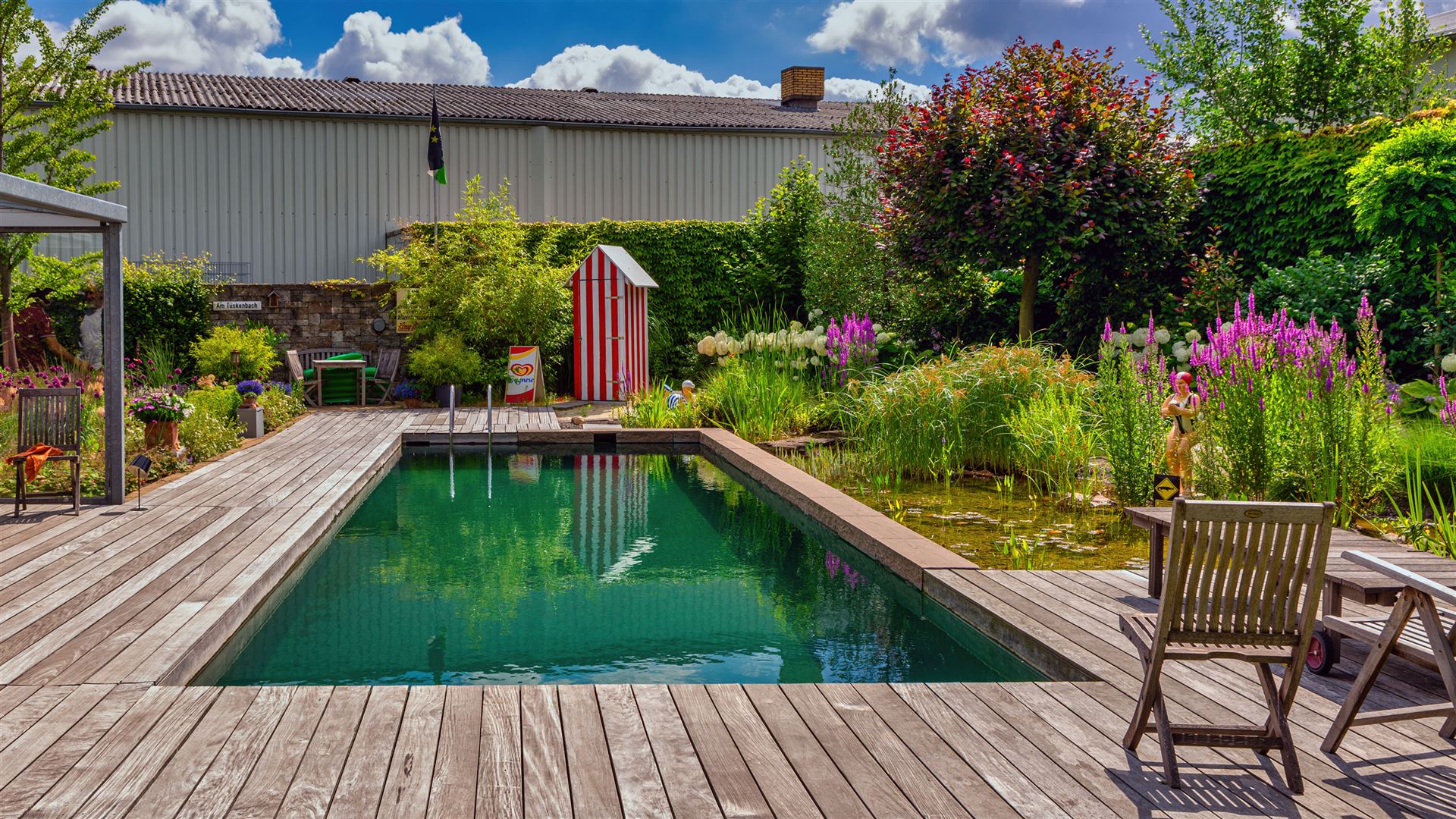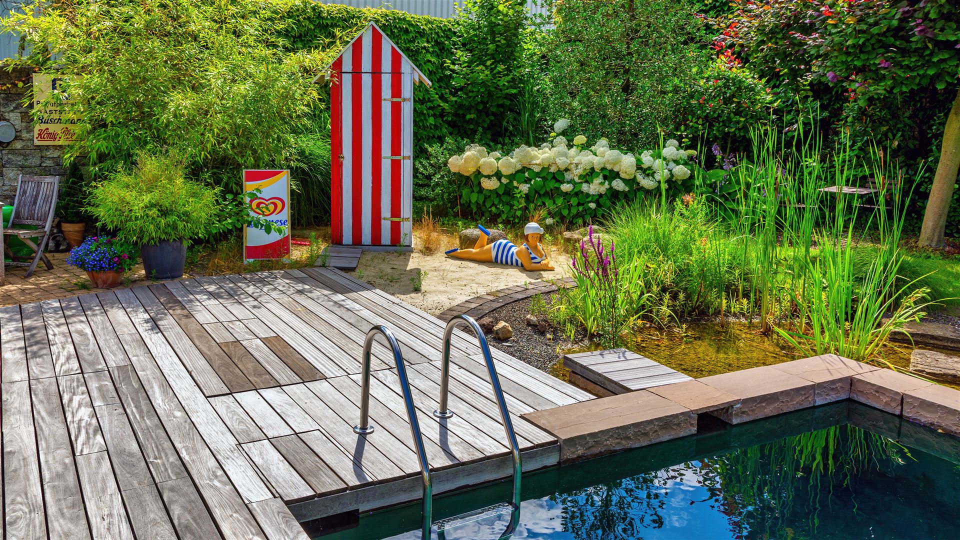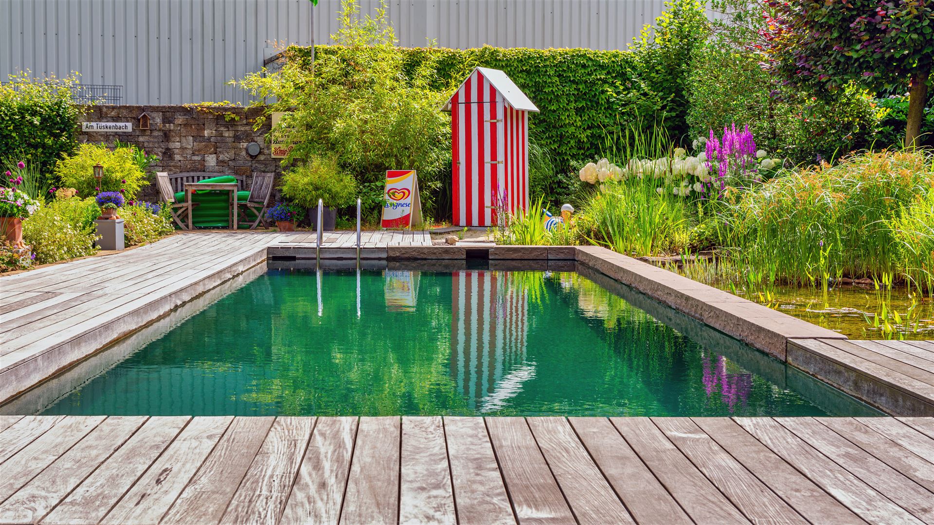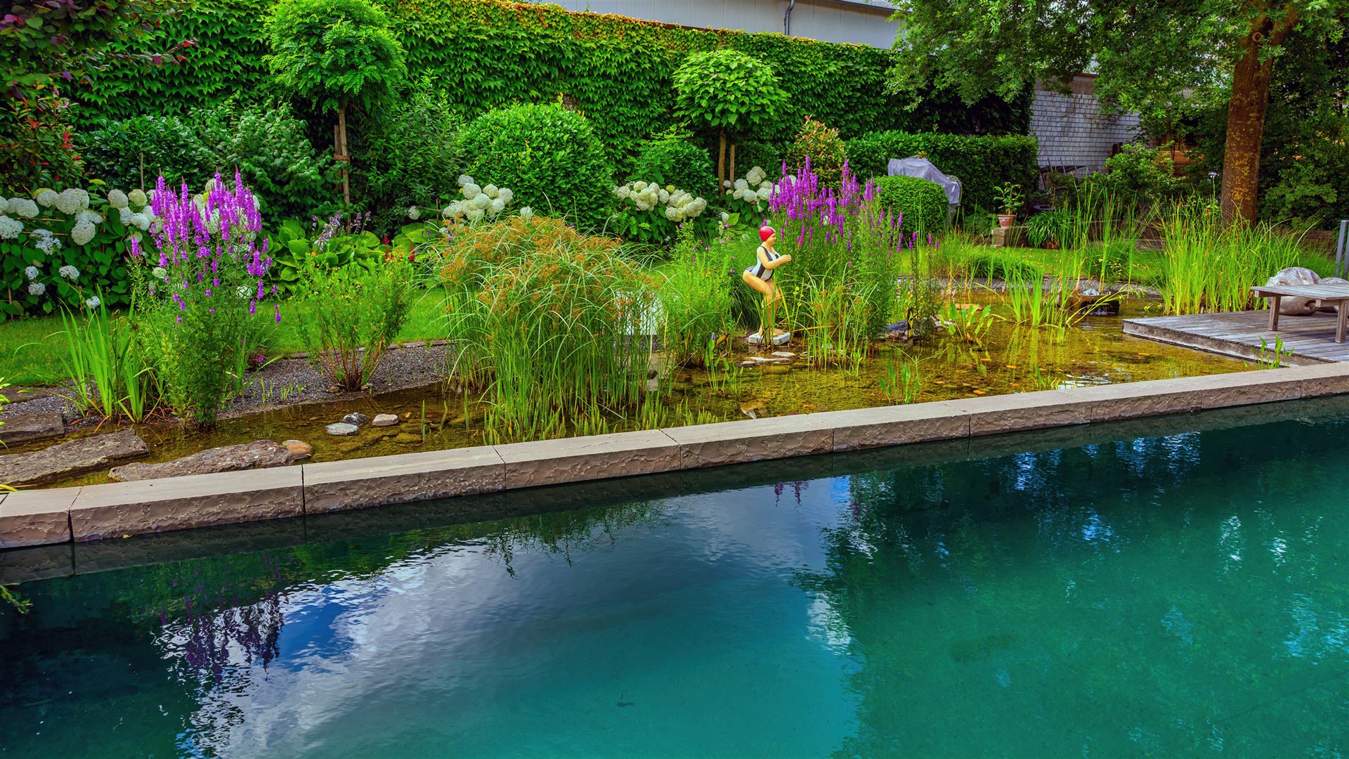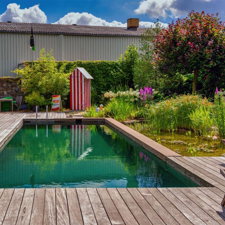 Swimmingpool mit Teichanlage