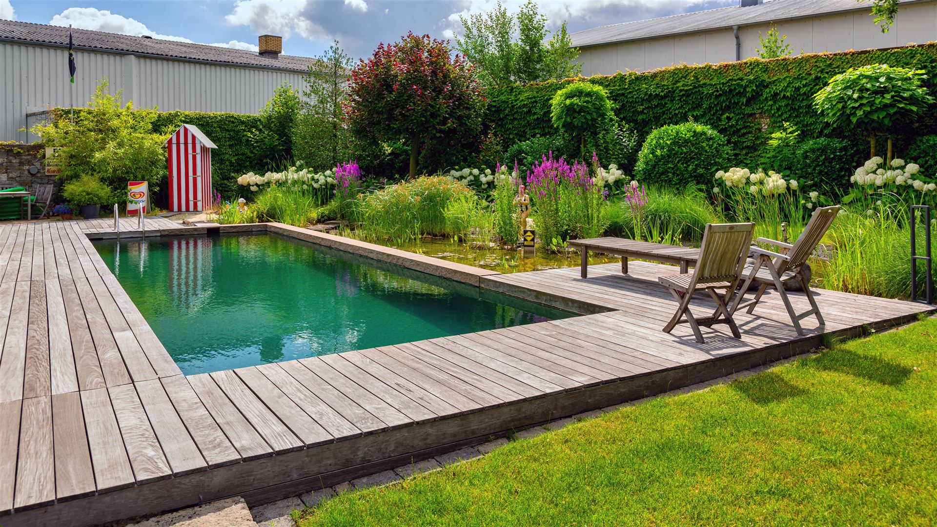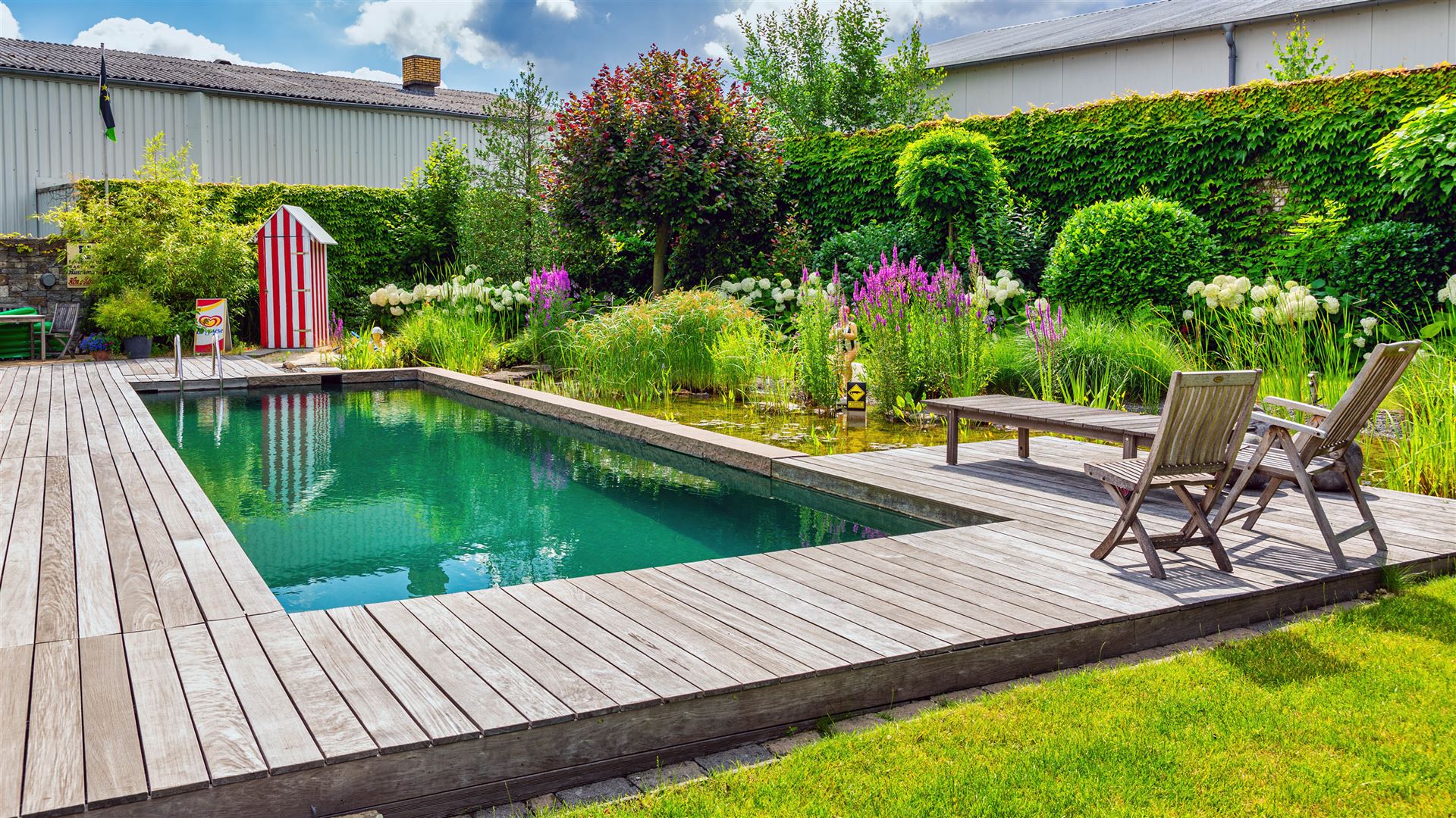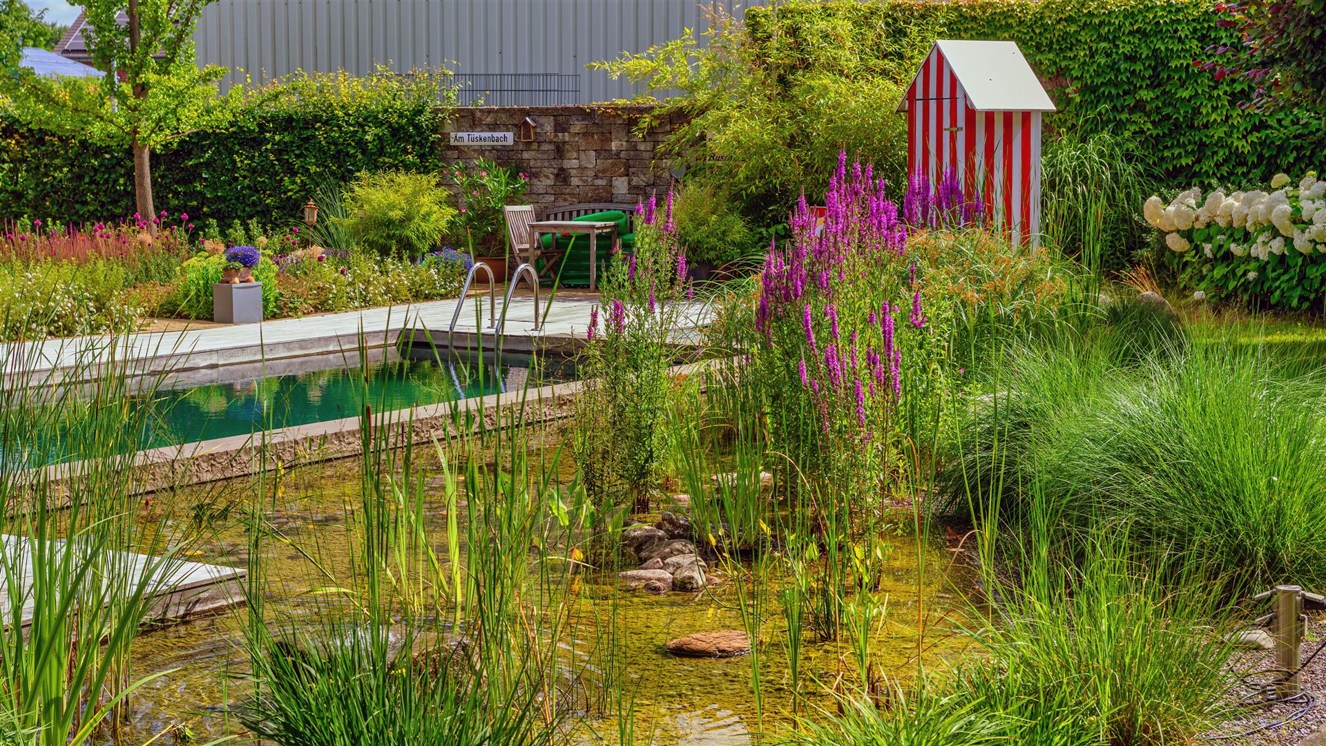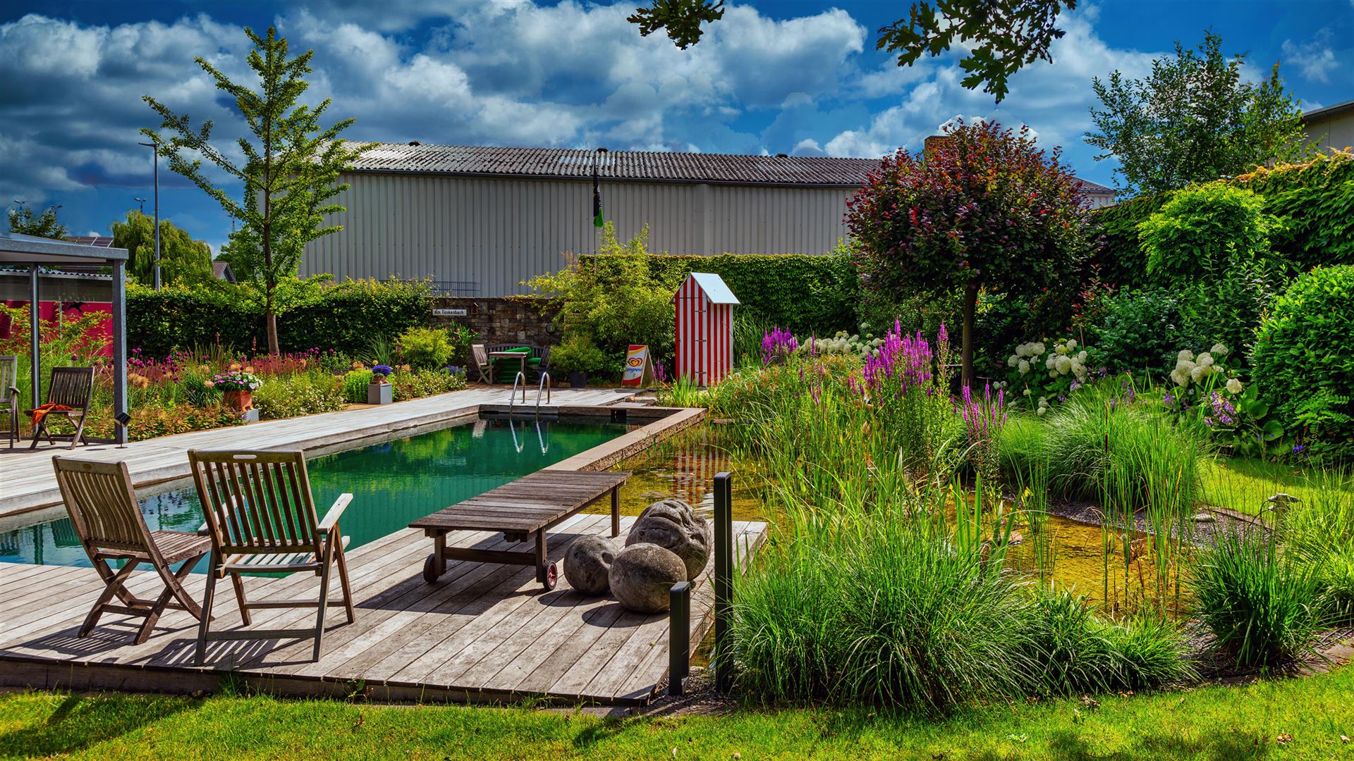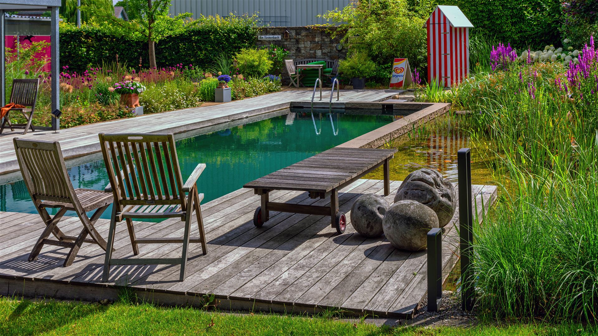 Swimmingpool mit Teichanlage